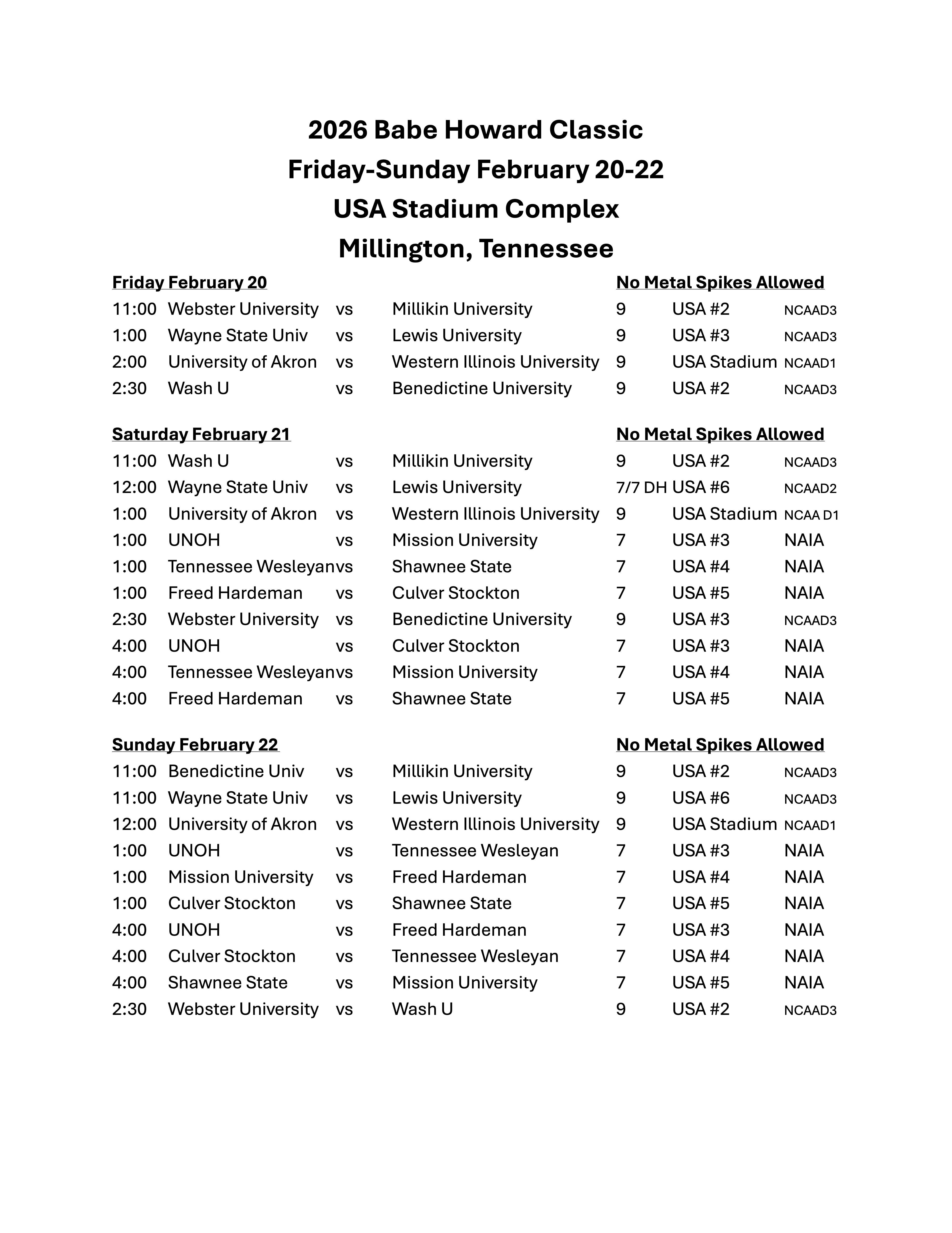 JUCO Classic Schedule