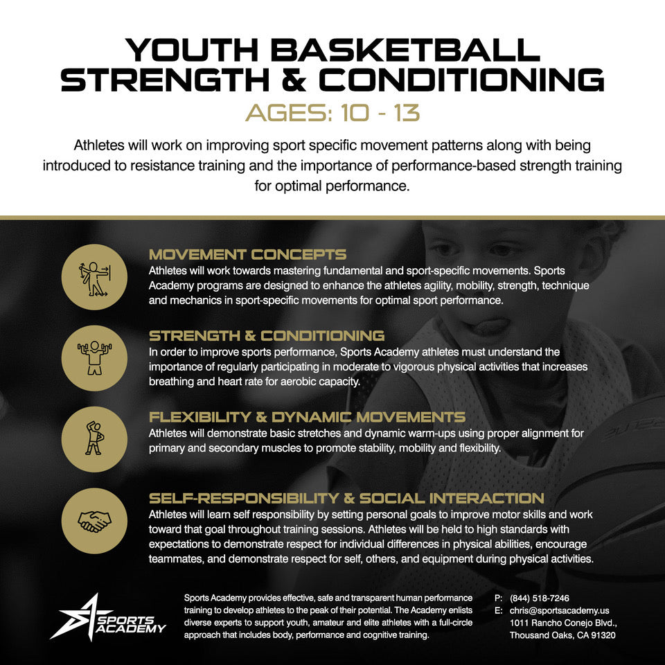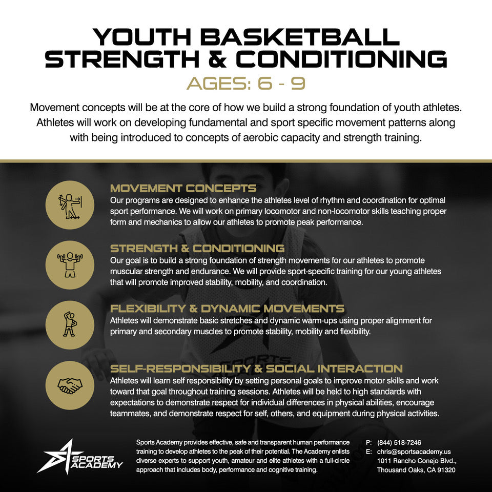 Sports Academy Youth Basketball offers young athletes a fun, competitive environment to build skills, confidence, and teamwork. Players develop strong fundamentals and a love for the game—both on and off the court.